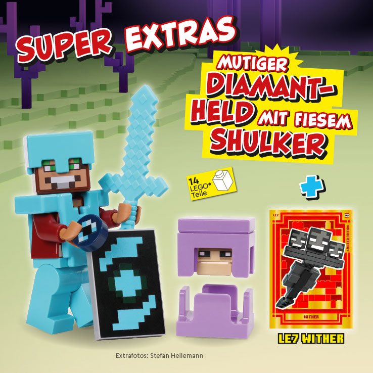 Das neue LEGO® Minecraft™ Magazin nimmt dich mit in die atemberaubende Welt von Minecraft™. Erlebe die spannenden Abenteuer der einzigartigen Figuren mit - Lass dich aber nicht von den Zombies oder anderen Kreaturen erwischen! Neben einem coolen Comic gibt es in jeder Ausgabe knifflige Rätsel, tolle Poster außerdem eine original LEGO® Minifigur.
