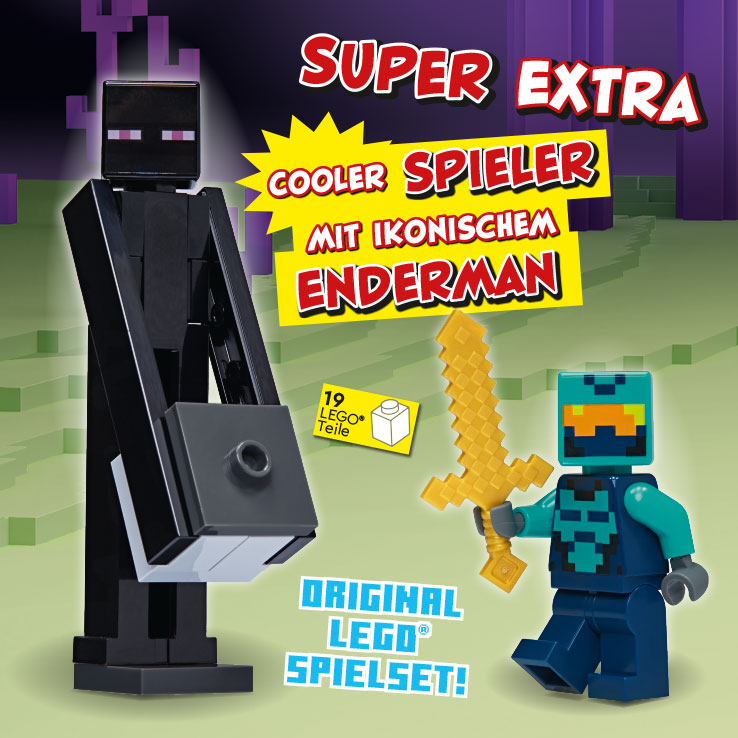 Das neue LEGO® Minecraft™ Comic nimmt dich mit in die atemberaubende Welt von Minecraft™. Erlebe die spannenden Abenteuer der einzigartigen Figuren mit - Lass dich aber nicht von den Zombies oder anderen Kreaturen erwischen! Neben einem coolen Comic gibt es in jeder Ausgabe tolle Poster und eine original LEGO® Minifigur.