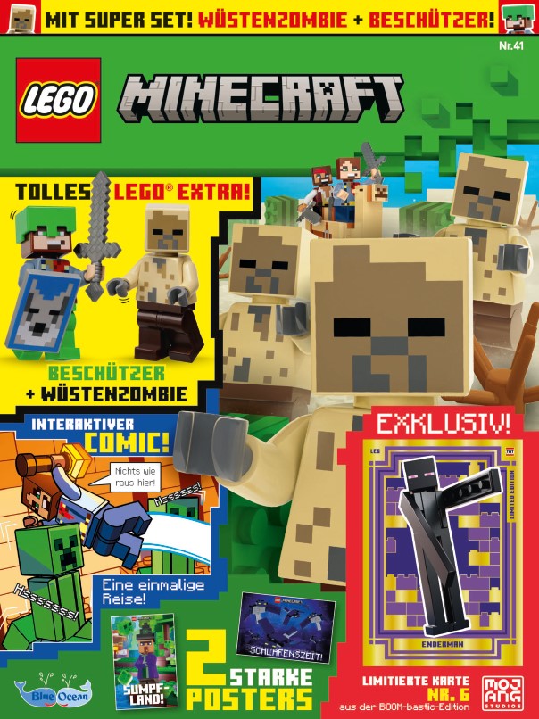 Das neue LEGO® Minecraft™ Magazin nimmt dich mit in die atemberaubende Welt von Minecraft™. Erlebe die spannenden Abenteuer der einzigartigen Figuren mit - Lass dich aber nicht von den Zombies oder anderen Kreaturen erwischen! Neben einem coolen Comic gibt es in jeder Ausgabe knifflige Rätsel, tolle Poster außerdem eine original LEGO® Minifigur.