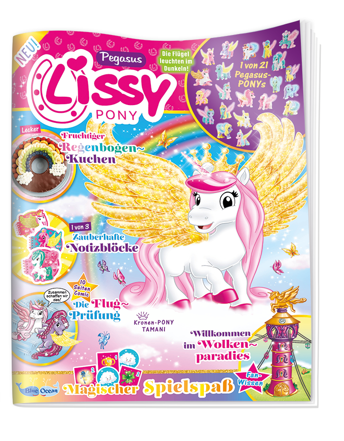 Alle 6 Wochen warten auf euch kunterbunte 36 Seiten, mit denen ihr noch weiter in die traumhafte Welt der Lissy PONYs eintauchen könnt. Mit spannenden Comics, kniffligen Rätseln, tollen Gewinnspielen, vielen Activity-Seiten mit Malvorlagen, Bastelideen und bunten Postern, lässt das Magazin das Herz eines jeden Mädchens höherschlagen. Unentbehrlich sind dabei auch die Steckbriefe mit allen Infos zu den verschiedenen Ponys.