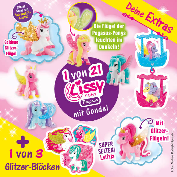 Entdeckt jetzt die magische Welt der Lissy PONYs. Das Lissy PONY Magazin widmet sich der beliebten Lissy PONY Pegasus Sammelserie und erweckt die zauberhaften Sammelfiguren mit ihren Gondeln zum Leben.