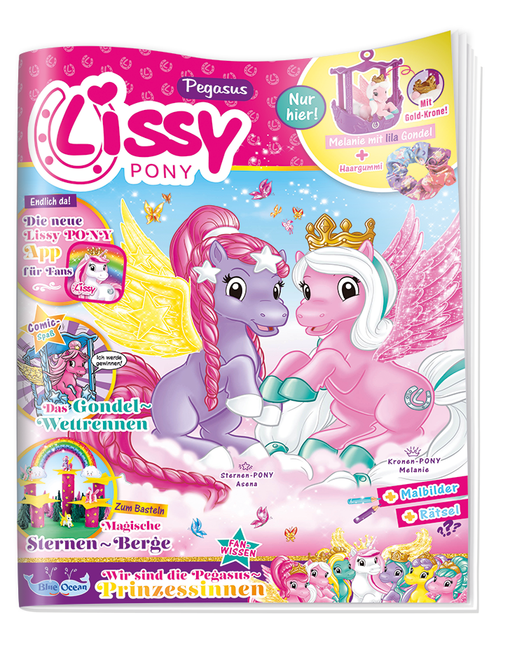 Alle 6 Wochen warten auf euch kunterbunte 36 Seiten, mit denen ihr noch weiter in die traumhafte Welt der Lissy PONYs eintauchen könnt. Mit spannenden Comics, kniffligen Rätseln, tollen Gewinnspielen, vielen Activity-Seiten mit Malvorlagen, Bastelideen und bunten Postern, lässt das Magazin das Herz eines jeden Mädchens höherschlagen. Unentbehrlich sind dabei auch die Steckbriefe mit allen Infos zu den verschiedenen Ponys.